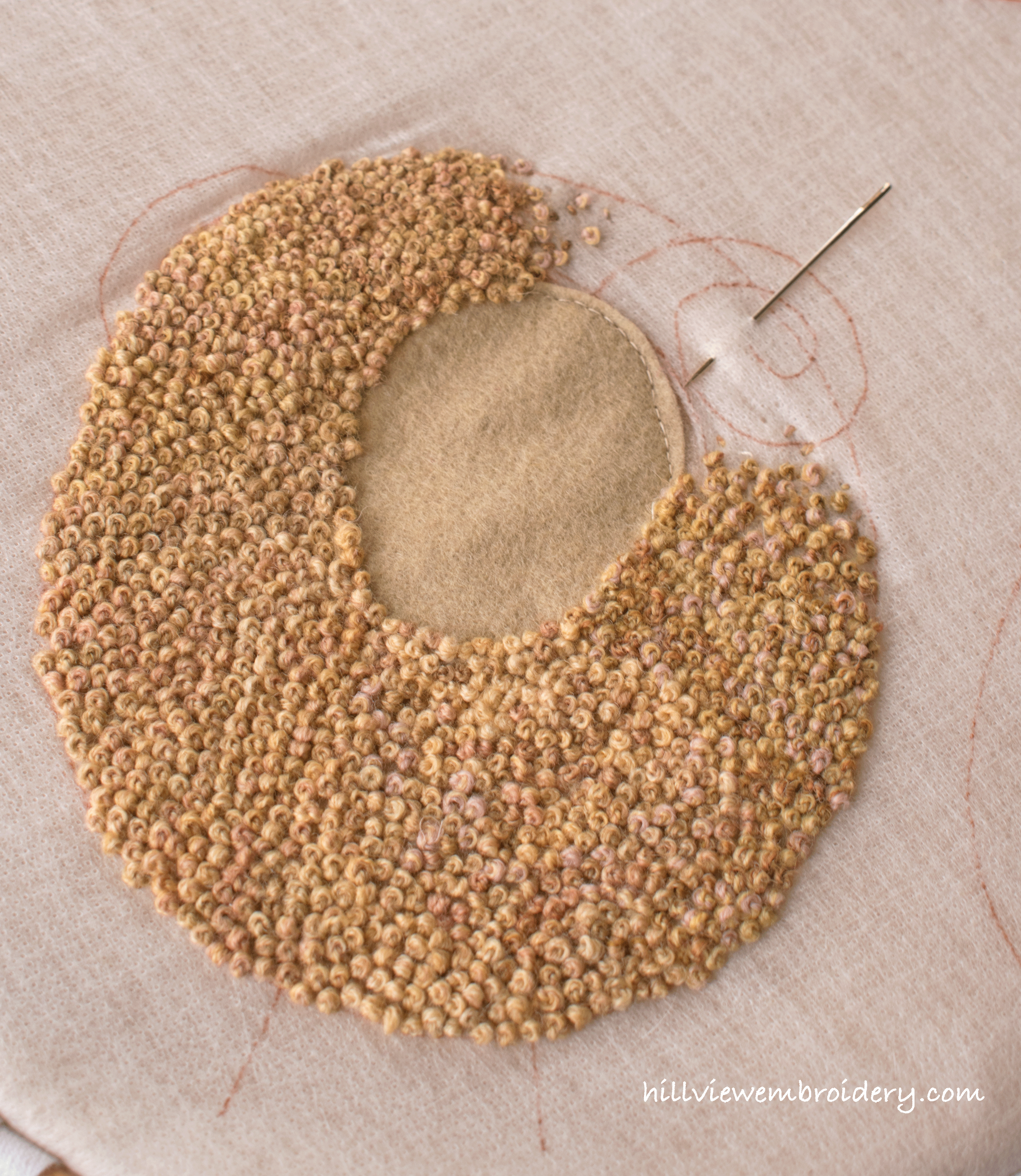 That is a lot of French knots. I think it looks beautiful, you did a great job blending the old and new knots and the different threads. As you said sheep’s wool isn’t perfect, but yours is