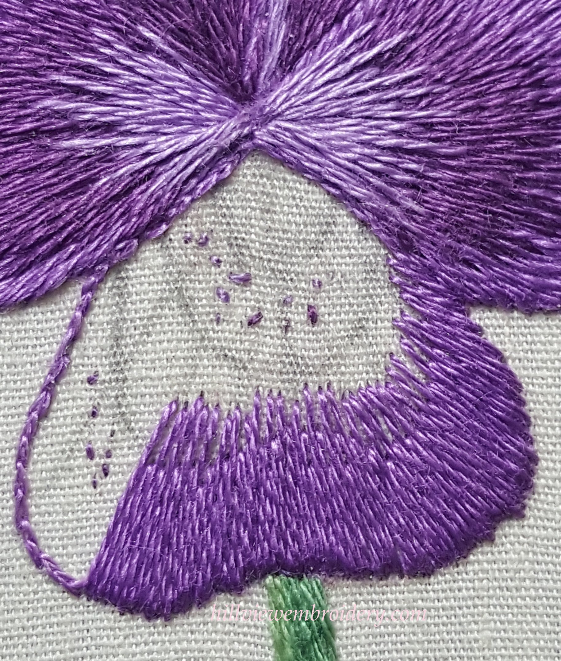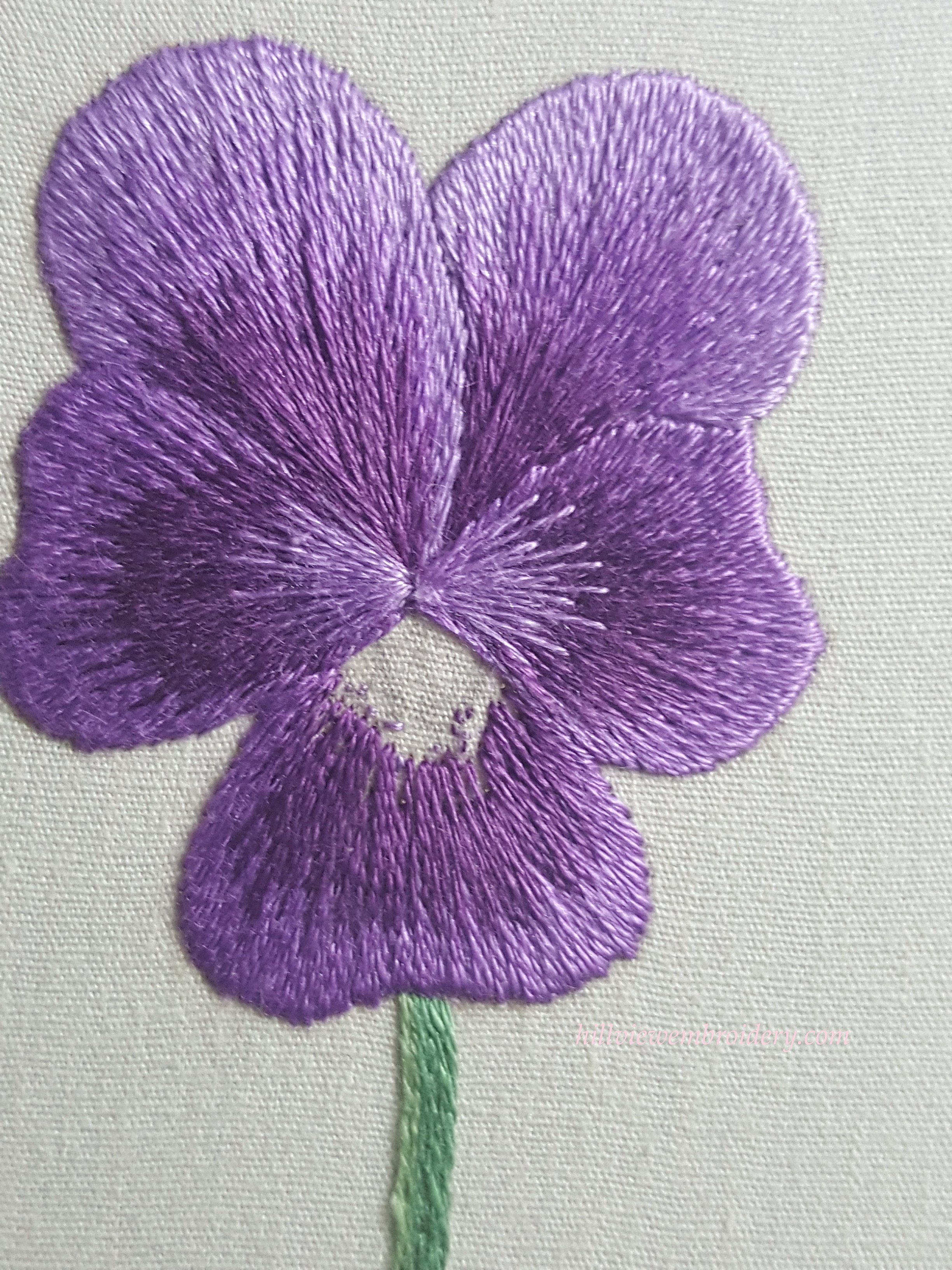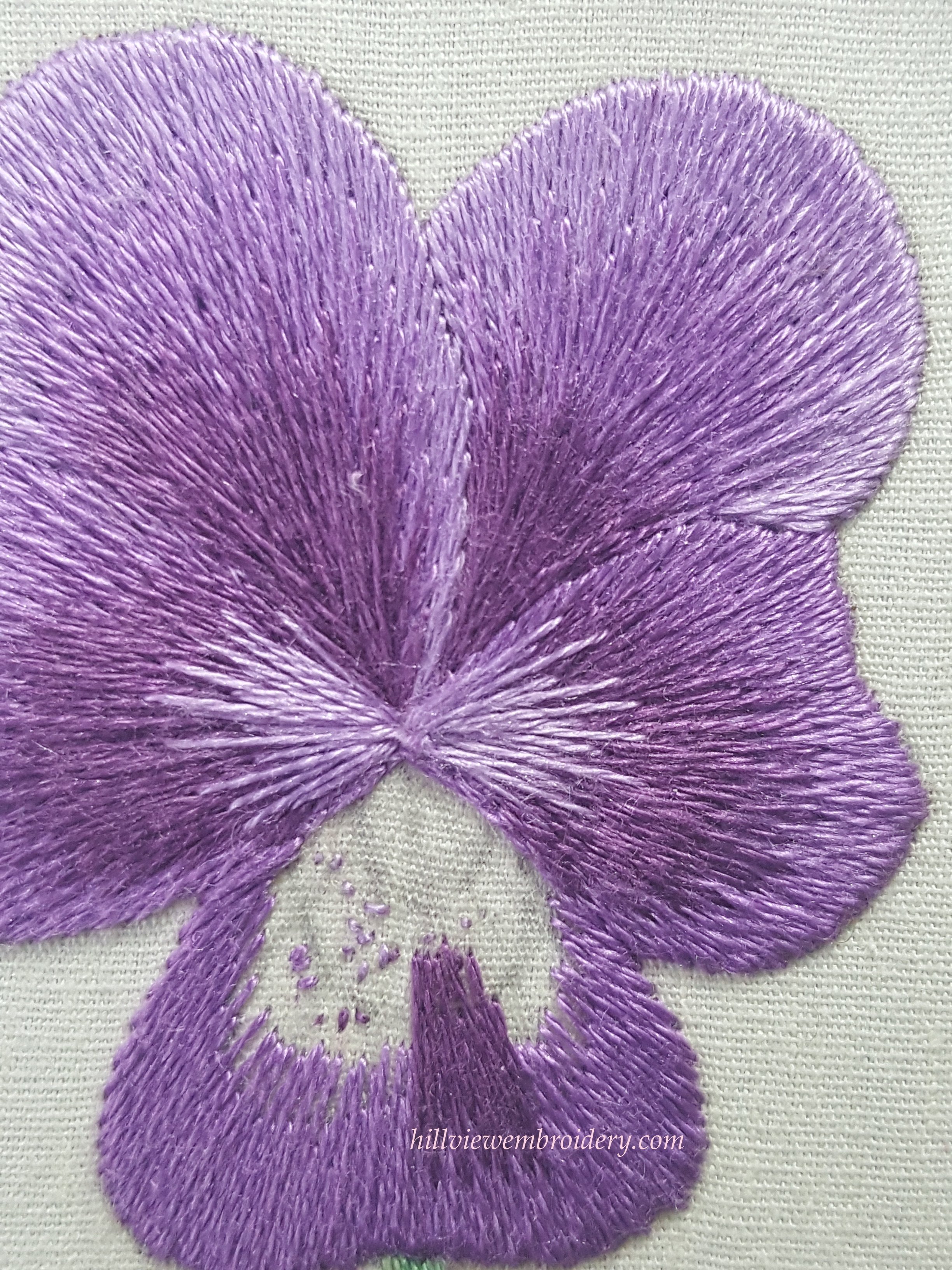 I’m still working on the pansy, and that was the focus of the evening. Most of the evening was spent very carefully pulling out some of the light purple on petals three and four. Originally I was just going to take all of the pale purple out, but after looking closely, I decided I could probably get away with just a couple of stitches that were the worst offenders and try just re-stitching those!