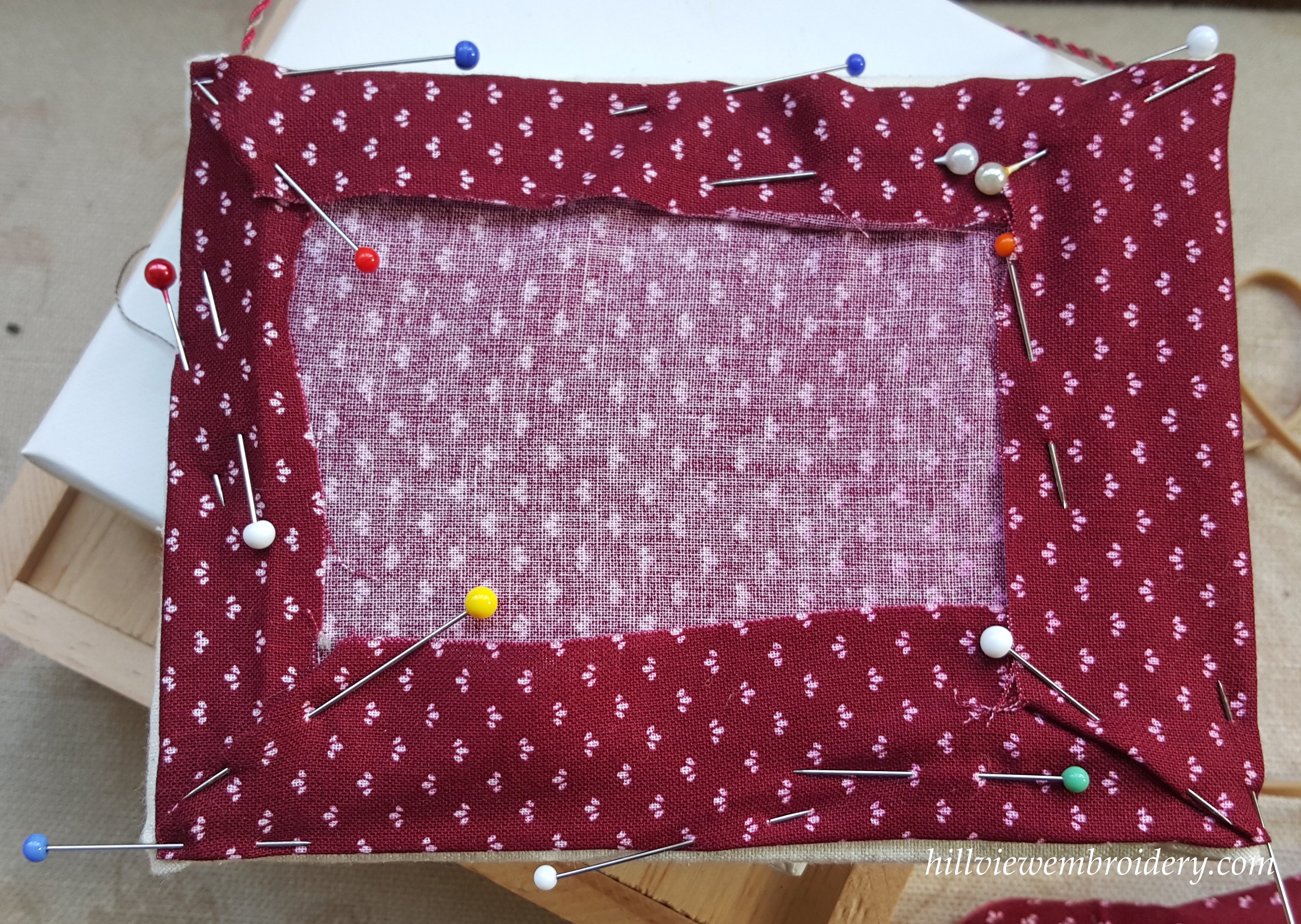 Next up was to test my memory of how to lace up a piece of embroidery onto the now covered board. Our internet was ‘gone’ for most of the day, so I had to go on memory! All in all, it worked out probably better than my first attempt, but I still need to work out how to properly work the corners.