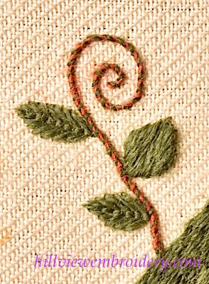 I’ve gone more with the heavy chain stitch idea rather than with bullions for the tail and I’m quite happy with the result. The raised stem band is quite a ‘slog’ to get through it! But it’s worth the work in the end. Can’t wait to see you piece!