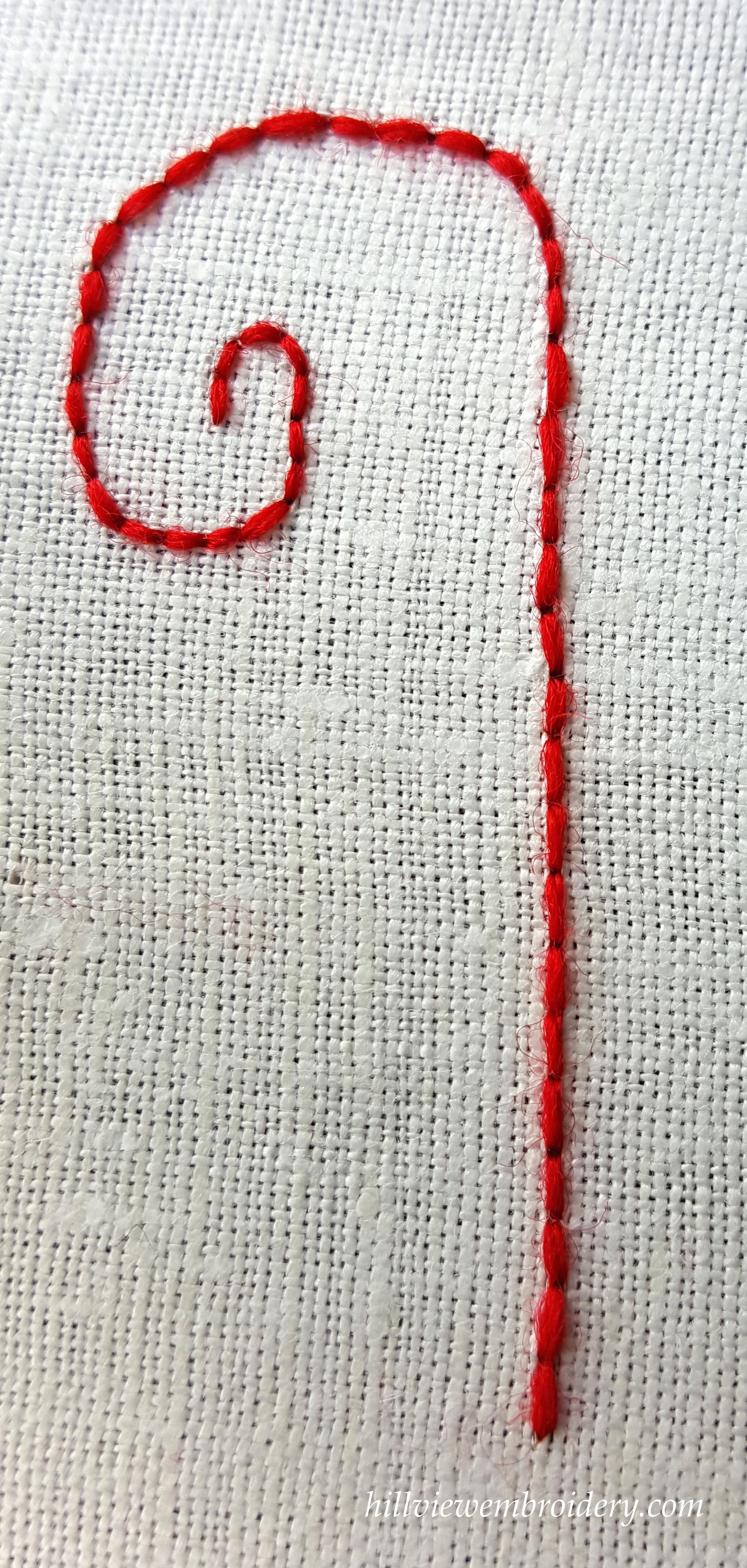 If you have curves to deal with (like on my ‘candy cane’), it’s worth trying to remember this at the beginning, so your stitches don’t suddenly get a lot smaller when negotiating the curves.