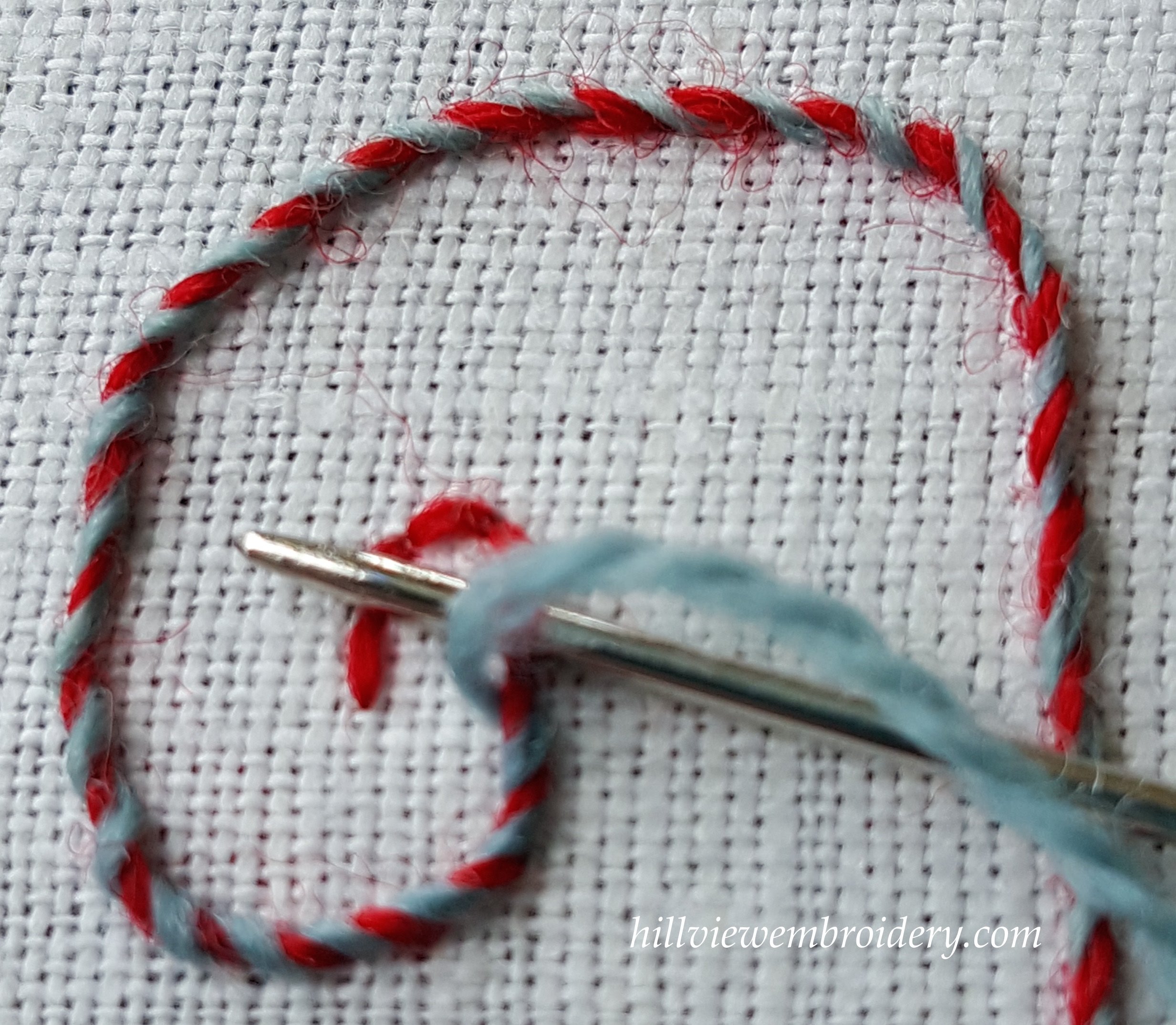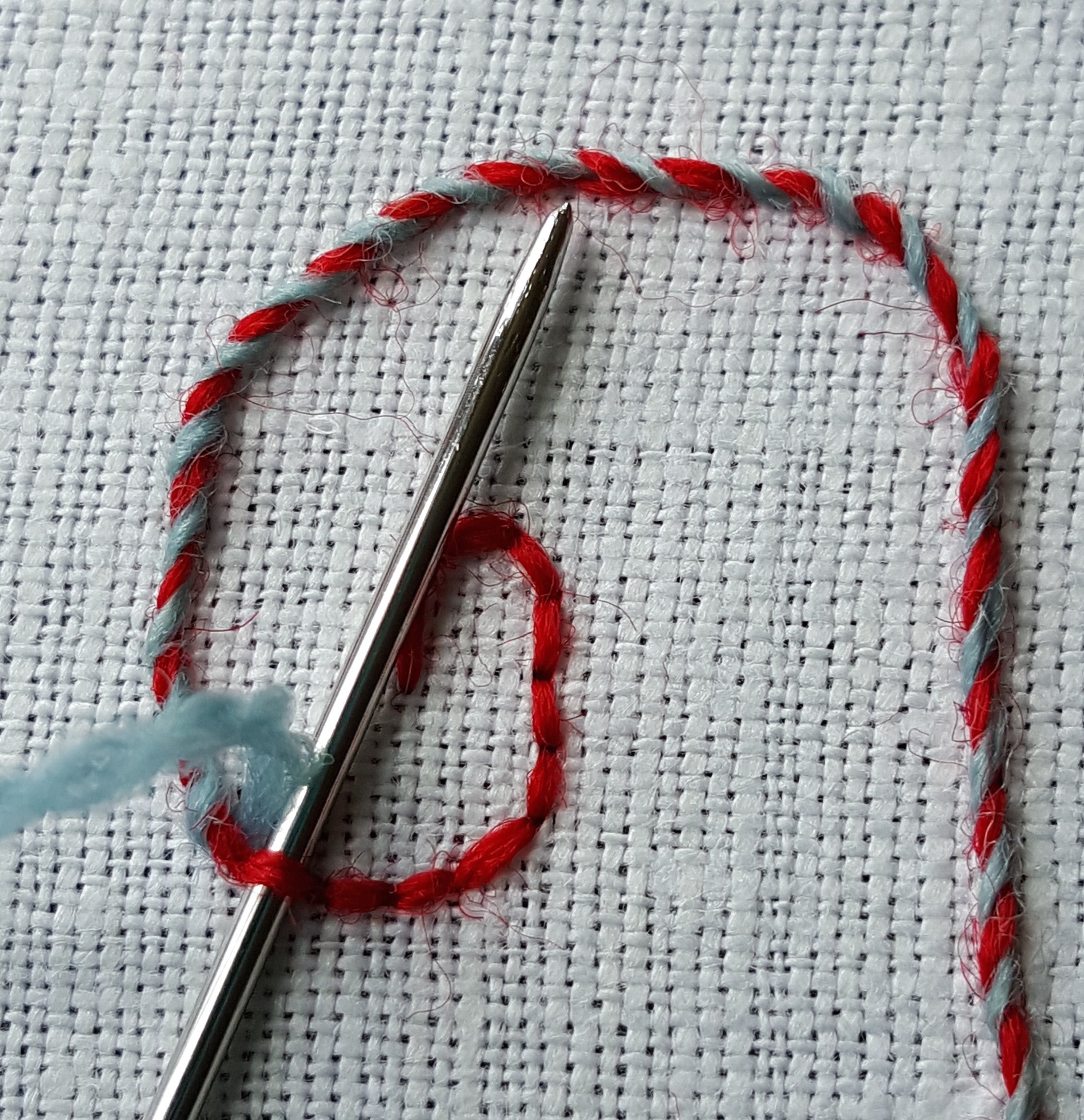 My finished result sort of looks like a candy cane. By using different coloured thread you could get some really lovely effects. If you wanted it to more closely resemble stem stitch, use the same colour for both the backstitch and the whipping.