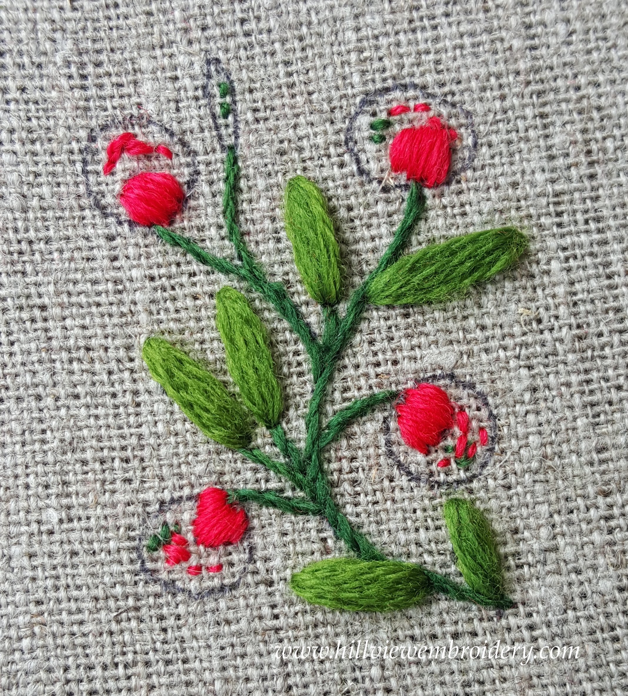 Before Easter, I had purchased a couple of kits from The Noble Thread. If you haven’t seen Caroline’s work, do make sure you check out her website or Facebook page – her creations are just stunning! Her blog is also a great one to follow along with – the research she puts into the history for her interpretation of the works is really interesting. Anyway, the first parcel I am still crossing my fingers for tomorrow’s mail delivery and hoping Royal Mail’s customer service team is better than the local post office team! But, moving along from that gripe, in the second parcel Caroline had very generously popped in a kit for a free pattern on her website. Yes, I know I have more than enough projects on the go, but I really wanted to stitch this straight away, so set myself up and spent a couple of very enjoyably hours stitching this gorgeous design. This may have also created a new thread obsession – Renaissance Crewel Wool – this is the most gloriously soft woollen thread I think I have ever used, and I will definitely be looking at investing in some in the near future!
