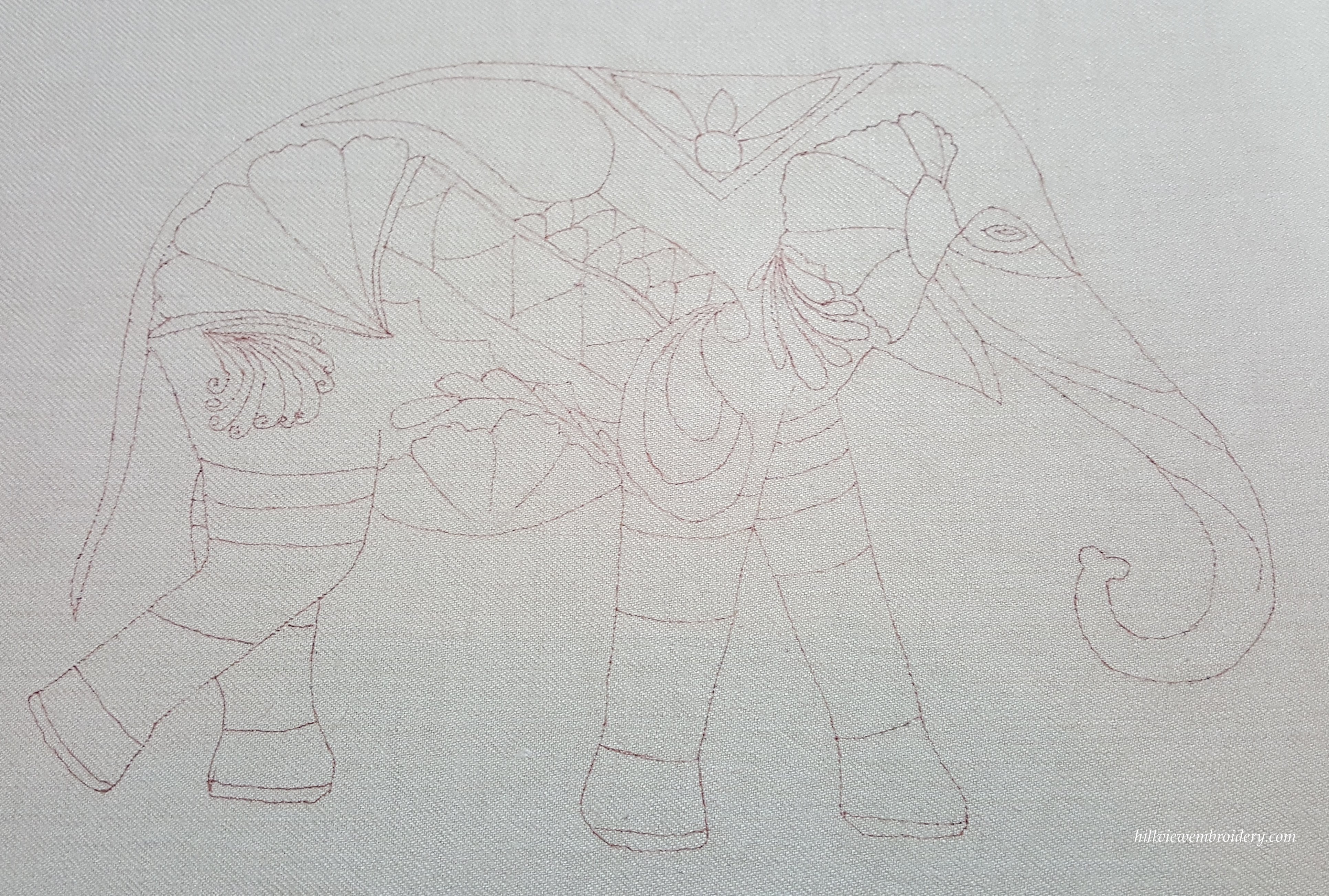 You may recall from my my first post of 2016 that I will be partaking in Take A Stitch Tuesday (TAST) this year. The first challenge comes out today, so I spent some time on the weekend getting ready with a design that I thought would be adaptable enough to use a variety of stitches on. I will have to see just how successful that is, and if this doesn’t work I will revert back to a more traditional sampler. Not necessarily a bad thing! I’m not sure I will be able to get all the stitches for the year onto this one design (in fact I’m pretty sure that will definitely not be achievable!). As it will be easy for me to transfer the same design again (I’ll talk about this shortly!), I may end up with a few elephants at the end of the year, all with a different decorative coat. My very premature thinking is that they could become gifts for my nieces if I make them up into cushions. But let’s not get ahead of ourselves! Not one stitch has yet been stitched!