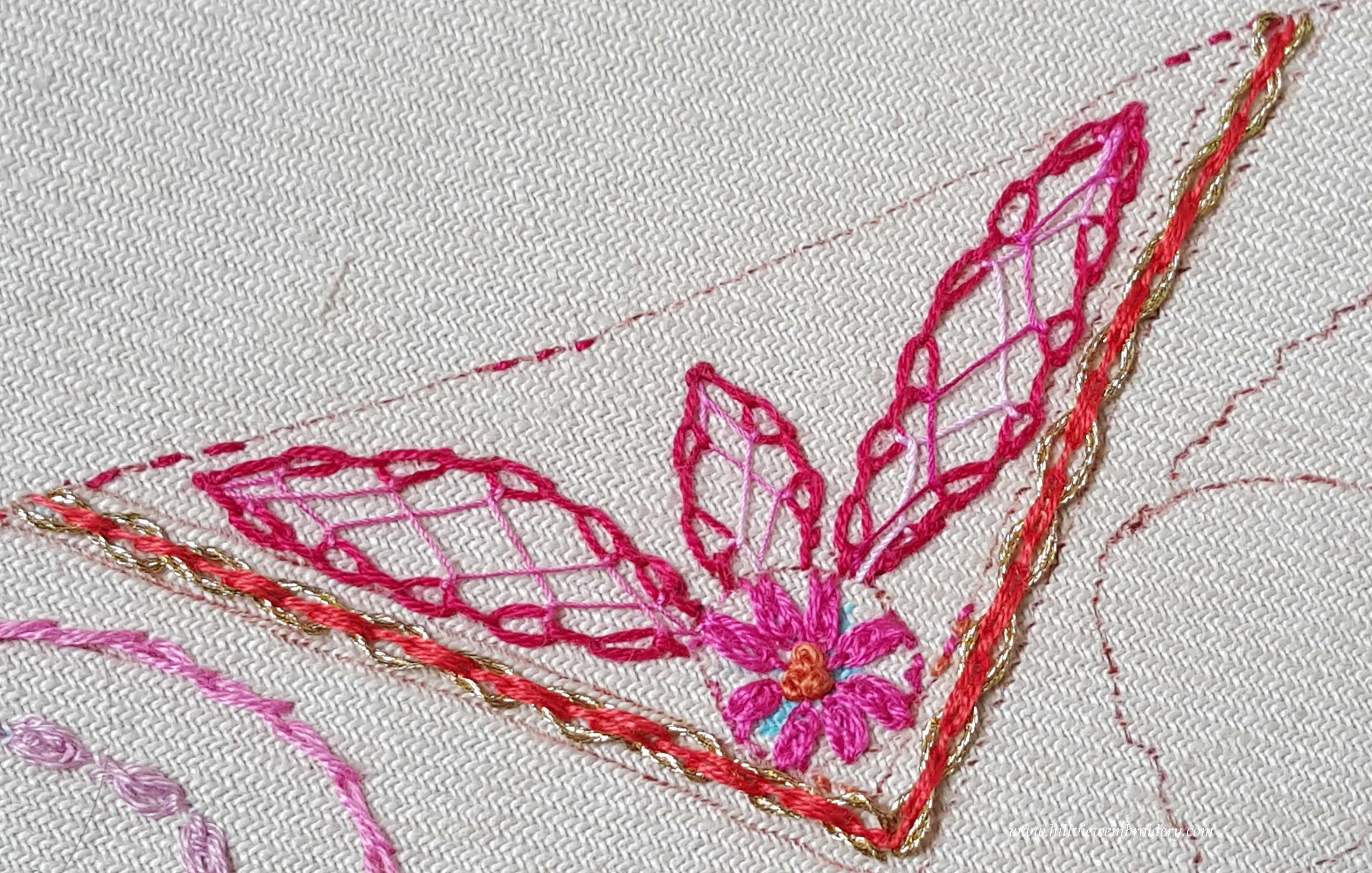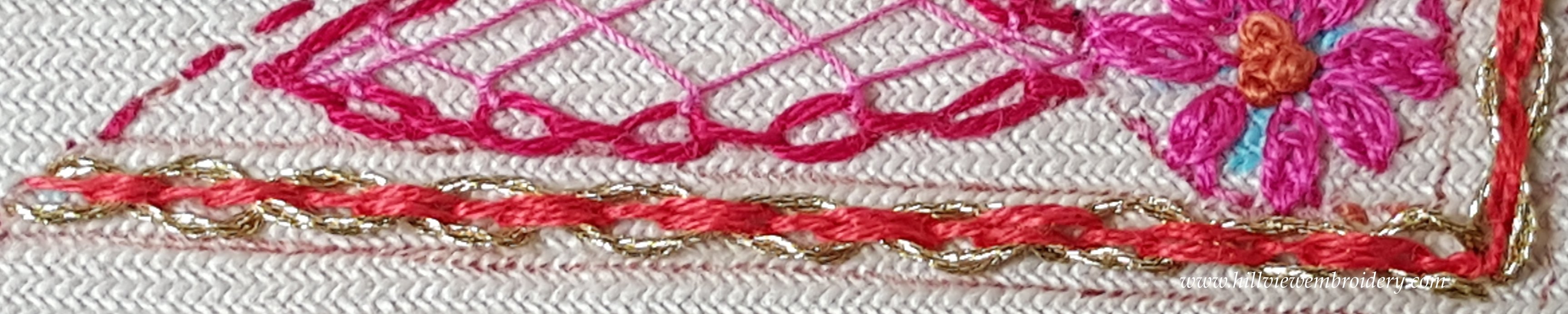 I quite enjoyed this stitch, and had a bit of fun adding a bit of bling with some metallic thread.
