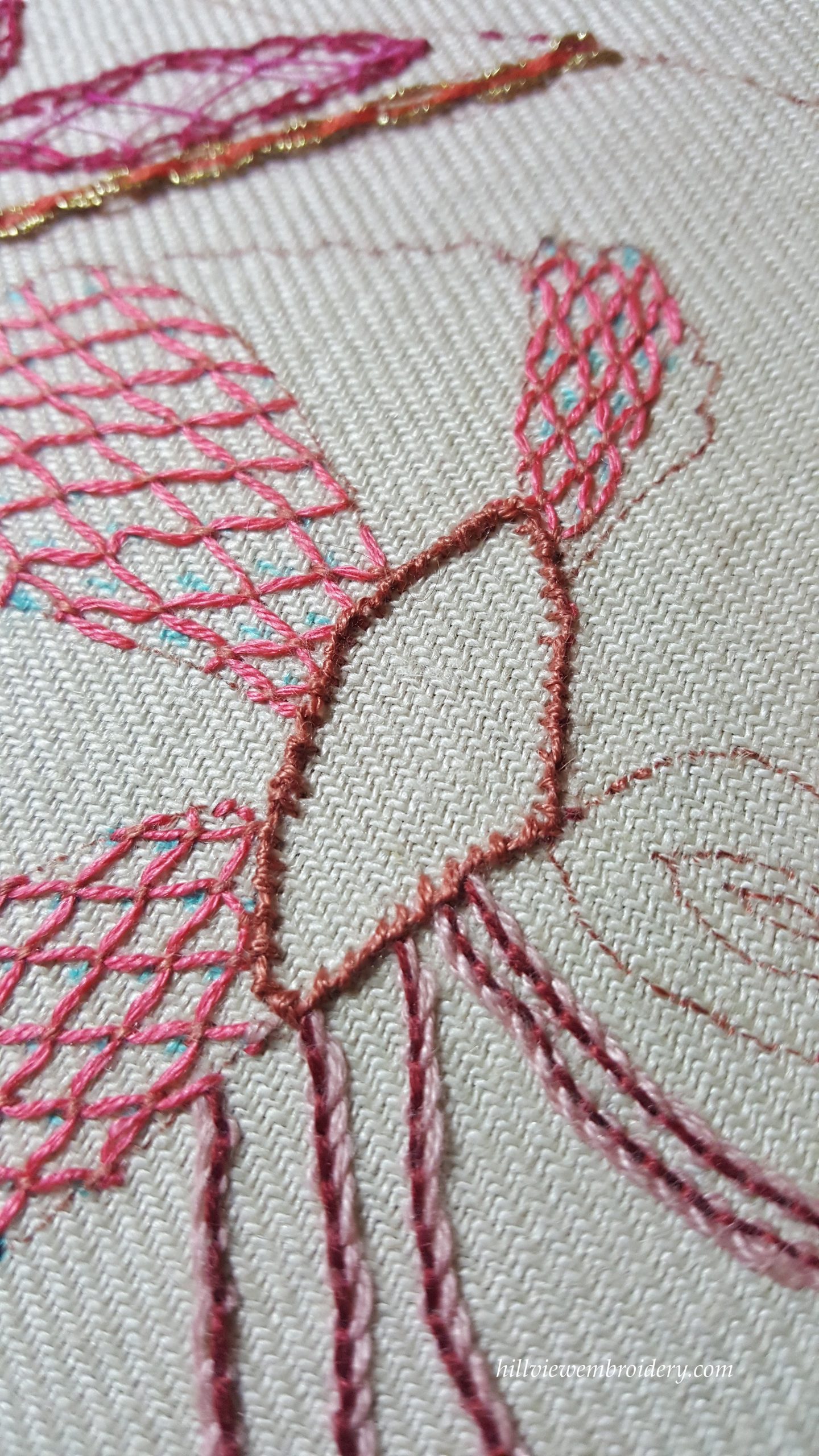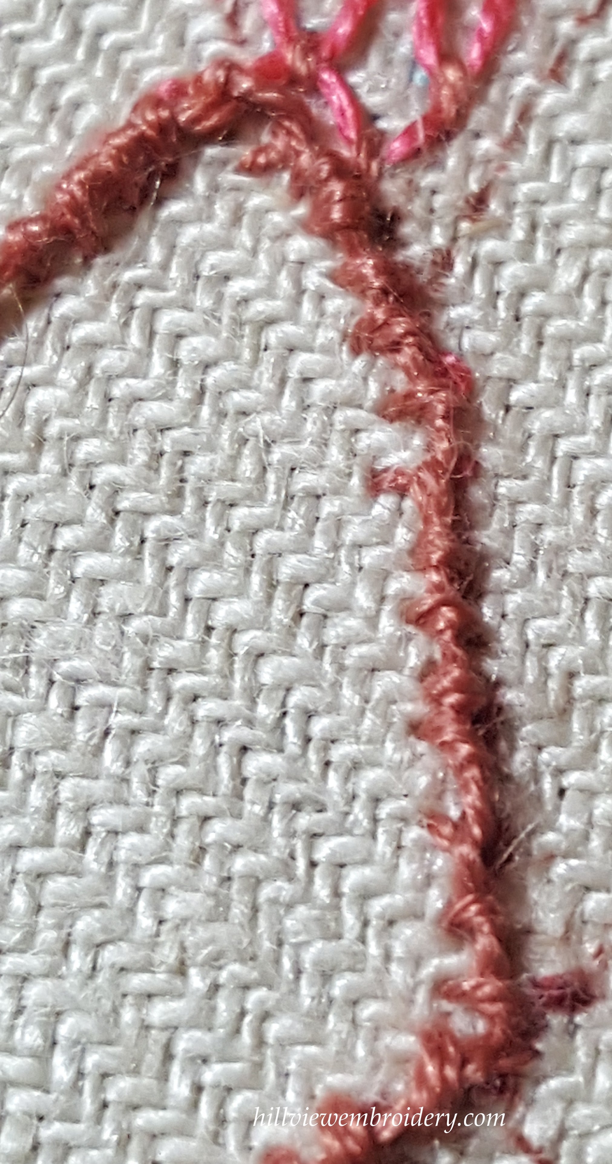 I’m a little late getting this post up sorry! Last week’s TAST Stitch was Coral stitch. Whilst the previous stitch was one of my favourites, this one was at the other end of the line. I still don’t think I completed it correctly, and you can see from the photos that I did make changes as I went around the shape.